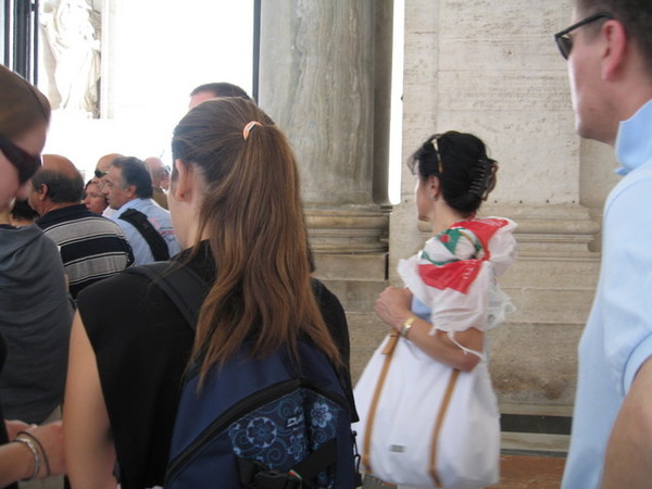 可是來到羅馬一定要去的聖彼得大教堂規定真的很嚴格,入口處有警衛層層把關,