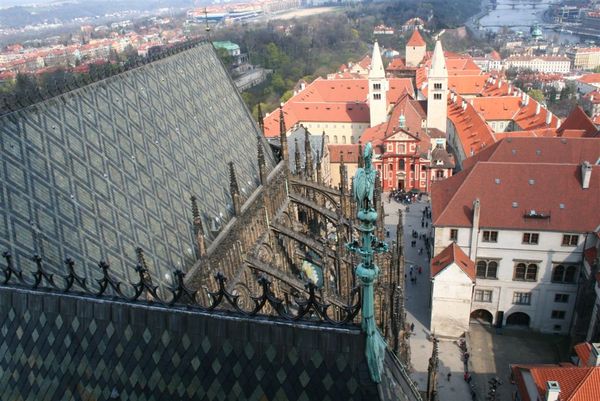 走了好久,反正我覺得很久,才來到城堡區,從圍牆邊俯瞰布拉格還蠻漂亮的
