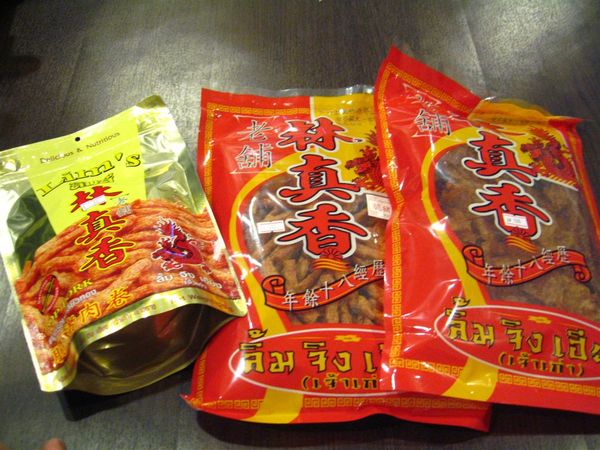 豬肉脆條100~110B;豬肉脆片有分大小包,大包約90~110B,看店家開價