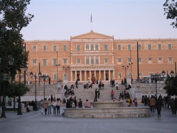 黃昏的憲法廣場,這裡是雅典鬧區,無論何時總是人聲鼎沸