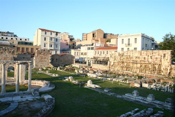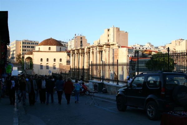 算了,雅典處處是古蹟,街頭轉角攤販群聚處又是哈德良圖書館