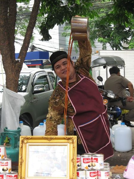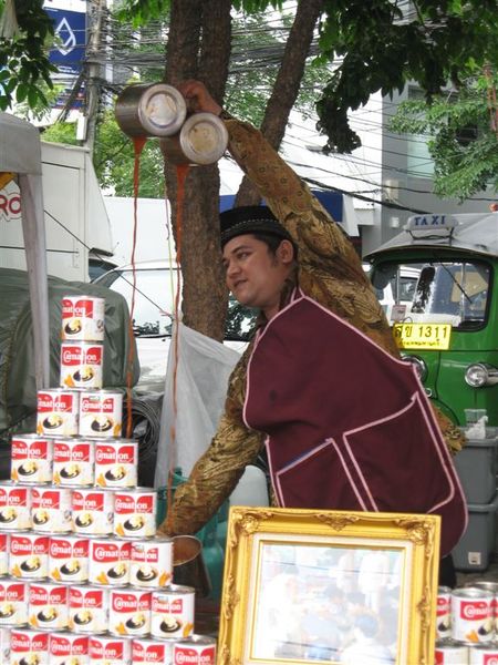 雖然這天天氣陰霾,可是還是悶,除了喝水以外,這攤拉茶吸引不少人的目光