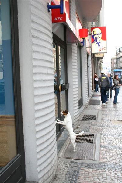 我愛狗,出門總會特別注意狗,發現捷克的狗大部分都很應聽話,都會乖乖等主人