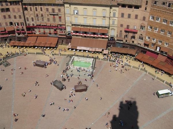 從高空俯瞰廣場,廣場像線條優美的貝殼,所以稱貝殼廣場,有人說這是義大利最美的廣場