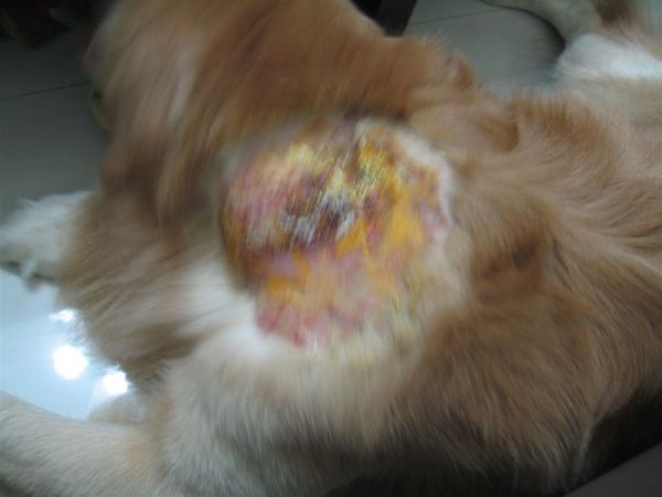 其他較小的傷口還有感染都已經恢復,雖然遠看還是禿了一大塊,不過毛總算是慢慢長回來了
