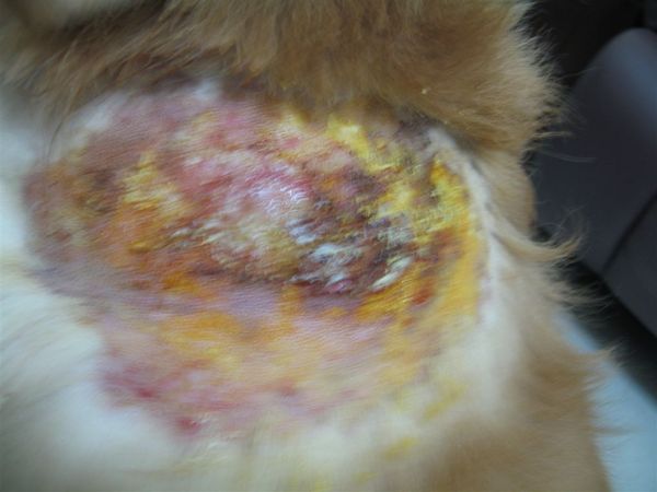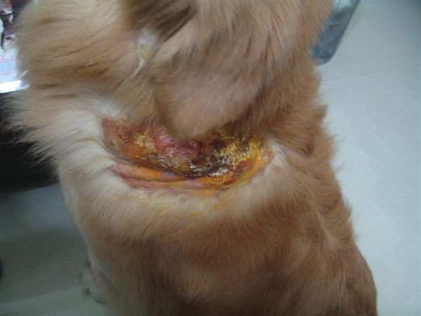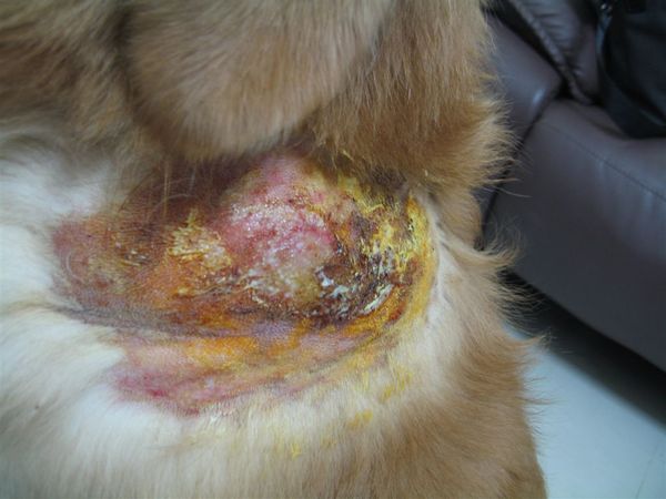 滲出的組織液混著膿水,把傷口附近的毛髮沾黏得很嚴重,我不知道該怎麼辦