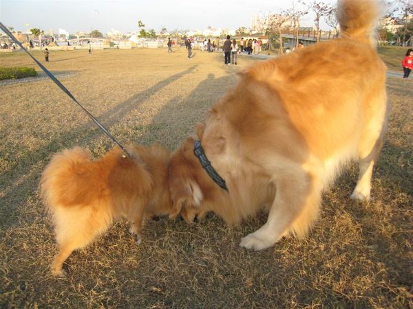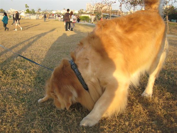今天看到這隻黃金也很漂亮,毛好整齊,米果這捲毛的傢伙沒得比