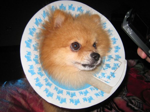 但是因為太厲害,連這樣還是可以舔到前腳傷口,於是在藍色太陽花之外我們還會替他戴上中型的「紅色玫瑰花