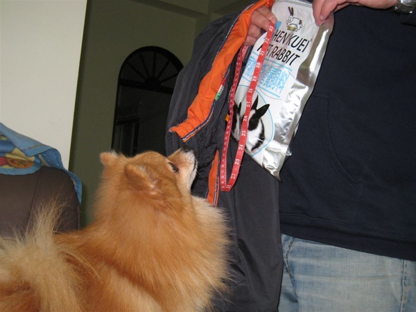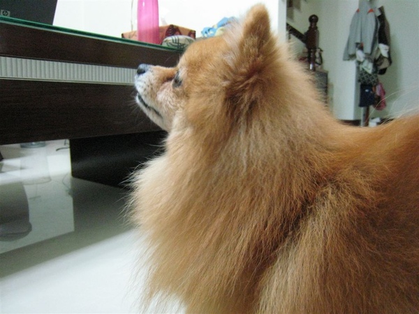 後來我們把飼料放到桌上他偷不到的地方,還很不死心的一直看