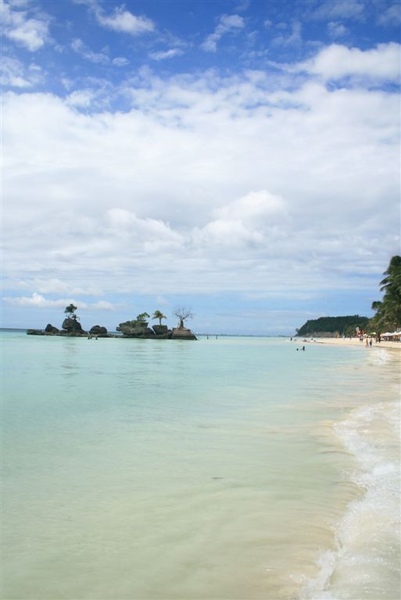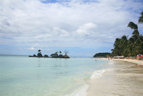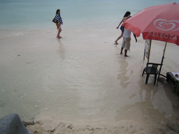 天空雲層稍厚,陽光時有時無,但是海水依然清澈,沙灘依然白晰