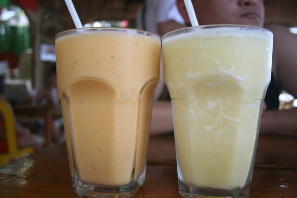 我點了一杯鳳梨+檸檬(右),小李點熱帶水果(左),我喝覺得有芒果和木瓜,不知道還有沒有其他的