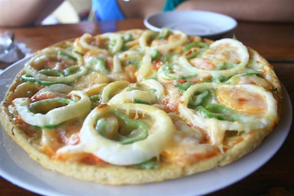 還點了一個蔬菜披薩當午餐,脆皮披薩,很像吃餅乾,不差啦,不過也不特別