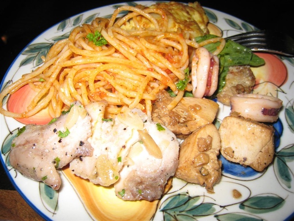 平常採單點,但星期六晚上是 buffet night,550P/人,加一成服務費,飲料另計