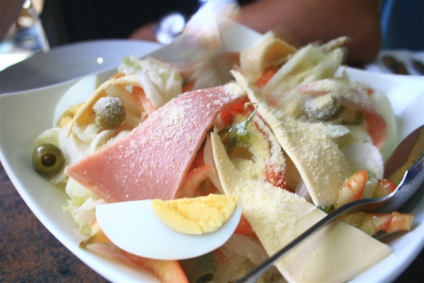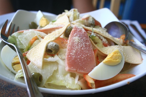 這特製沙拉有我們不喜歡的橄欖,跟希臘的醃漬橄欖一樣,有種怪味道,而且很鹹