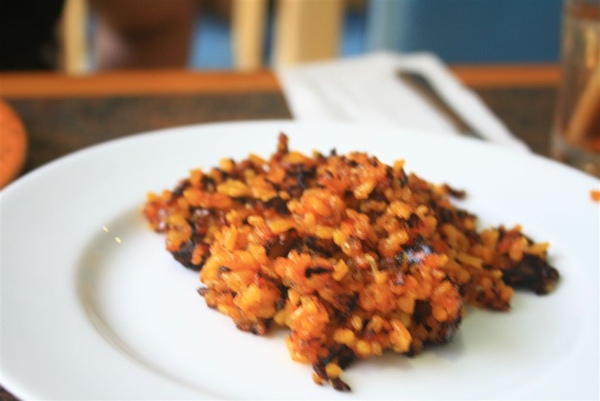 推到桌邊後服務生先把檸檬擠汁拌飯