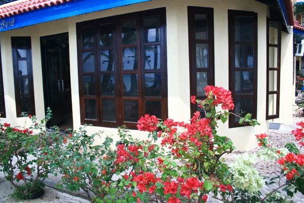 這個小旅館外的九重葛我每天都想拍他,很有南國島嶼風情