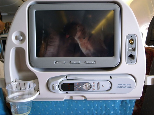 十二個鐘頭的飛行最重要的就是個人娛樂設備,長途飛機連螢幕都比較大