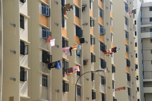 地小人稠的公寓這樣曬衣服,還要臂力強才行哩