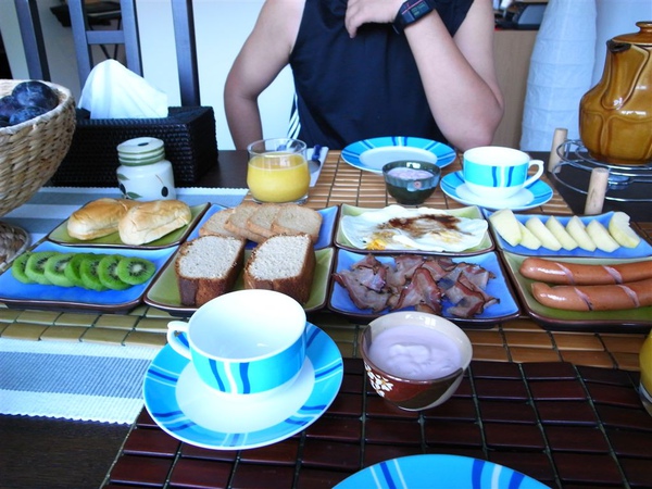 早上享用豐盛的早餐後,真的心滿意足!(窮鬼的心聲:這樣的早餐在這裡根本吃不到)