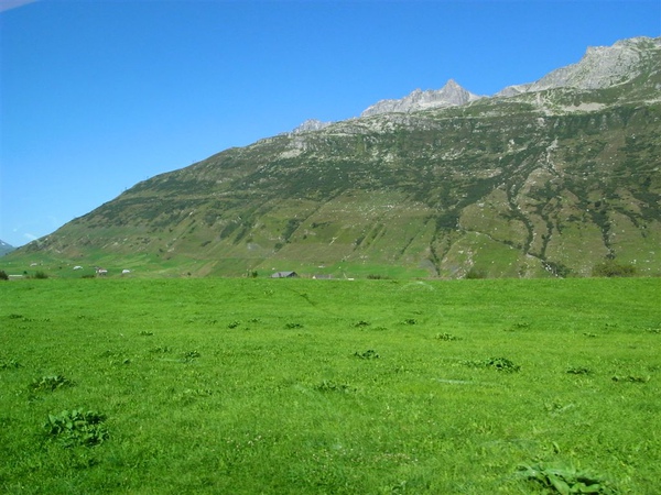 大約十分鐘就到安德馬特轉搭Matterhon Gotthardbahn,進站前這一片綠色吸引了我的目光