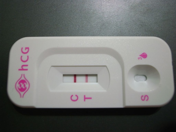 怕是便宜驗孕棒不準,下午又買了個驗孕盤,一樣沒幾秒鐘二條線通通跑出來昭告我:你有了!