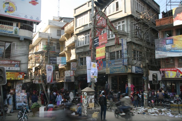 吃完早餐走出旅館看見第一眼加德滿都,嗯!這是最熱鬧的地區?