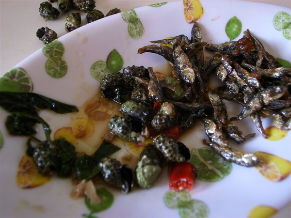 老闆招待的螺肉和小魚乾,我沒吃,老闆娘說有很多人回去後幾斤幾斤地買,不過我就是沒想吃這東西~