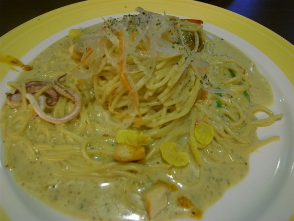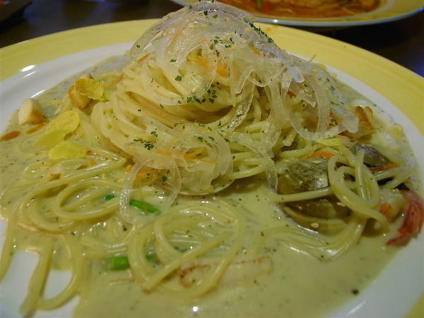 也是口味較為清淡的白醬,淡淡的白醬帶點蒜味,海鮮料不多不少,恰如其分!