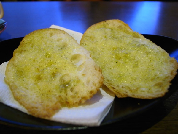 加40元可升級成套餐,有法國麵包兩片、濃湯一杯,法國麵包是蒜香的,吃起來比較軟,不是想像中的酥脆