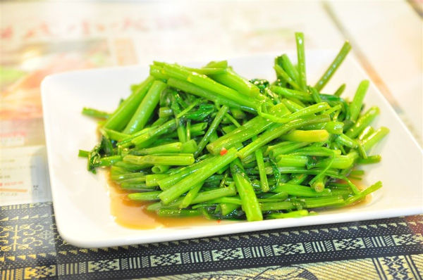 第一道上來的是蝦醬空心菜,空心菜還很翠綠,加了蝦醬味道跟一般家庭炒的空心菜很不一樣,很下飯,相對來說味道較重