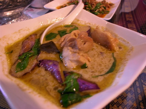 綠咖哩雞,雞肉非常滑嫩,是雞腿肉,我好喜歡!綠咖哩汁帶一點點奶味,這是我第一次吃綠咖哩,這麼好吃,難怪說去泰國必吃啊