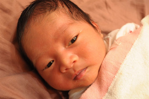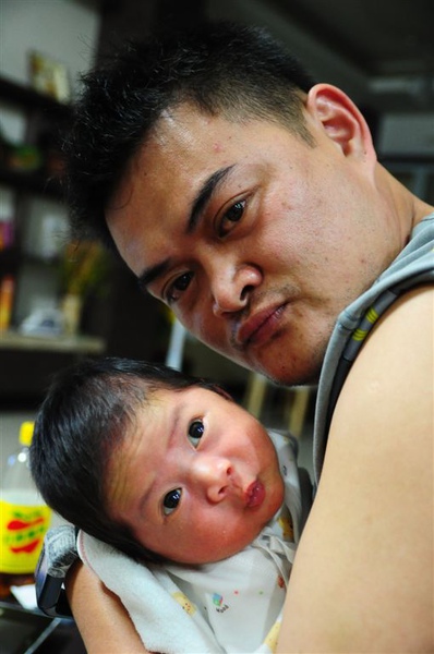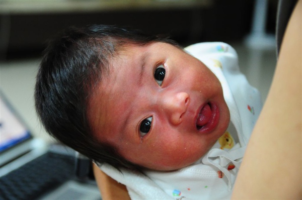 出生一個禮拜,開始會用眼淚攻擊,不過這時候的我欲哭無淚,總是被懷疑哭假的