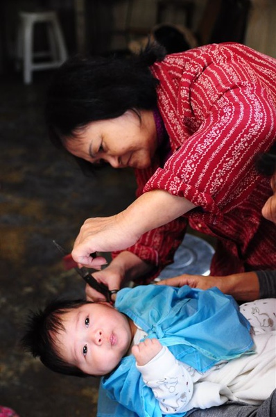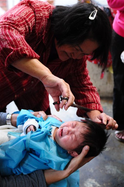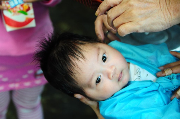這星期天回婆家,旁邊理髮店阿婆又來看小孩,問阿婆有在幫這樣的小小孩剪頭髮嘛?