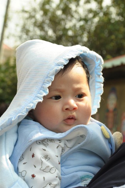 正好那陣子寒流一波波,計畫就暫緩,延到過年後正好滿四個月,可以光明正大帶出門