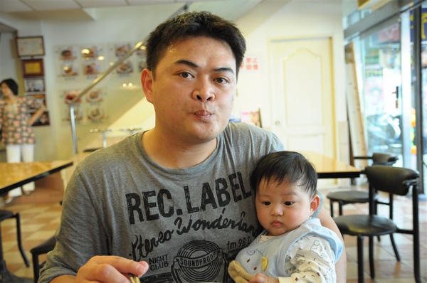 再來又是一路哼哼嗨嗨地到了「心之芳庭」,不過半路上我們兩個受不了,買了個安撫奶嘴塞他的嘴巴了