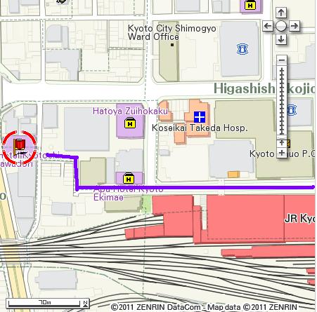網站地圖其實很清楚,出了京都車站大門後,左轉直走到底,順著路再左轉,過伊勢丹往BIC CAMERA