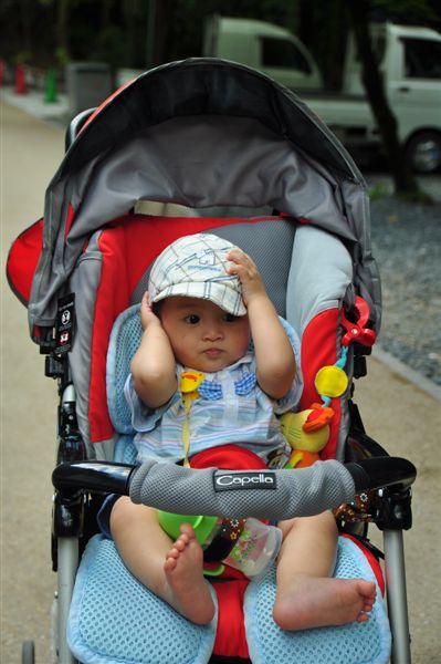 雖然這裡有些階梯,不過十來階而已,小孩抱起來,推車背一下就過去了~