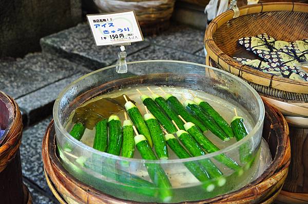 一路上看到的商店大多是賣醃漬物的,這個看起來很清涼,老闆殷勤推薦是他們的特產,所以我爸買了一條。他說,就...小黃瓜啊!