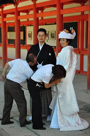 運氣很好碰到新人在拍結婚照,日本傳統結婚禮服,不過新人快熱昏了,旁邊一直有人搧風、遞水,而且為了畫面好看,新娘完全都不能動,好辛苦啊!