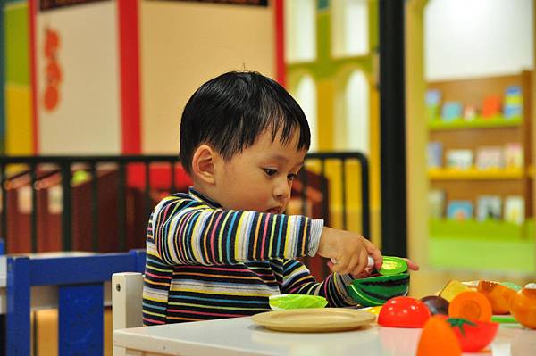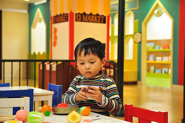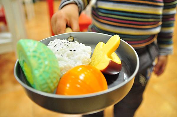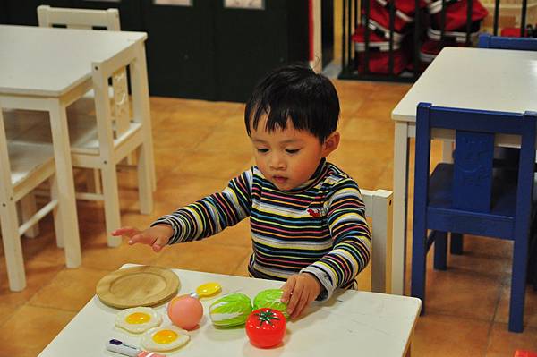照片不夠詳盡,但是鍋碗瓢盆、刀叉一應俱全,在家就很喜歡切切遊戲的小恩這下子更是如魚得水,好多東西可以切啊!