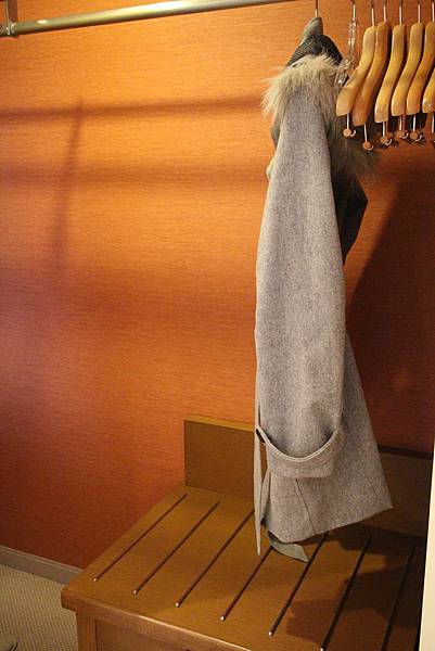 左手邊是衣帽間,很大一間,掛個十幾件衣服都不是問題