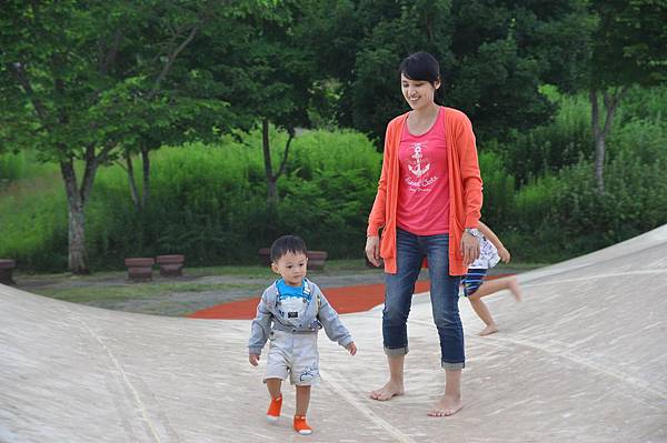 還有個山坡可以滾大球,可惜球比小恩高,他推了一下就不推了。
