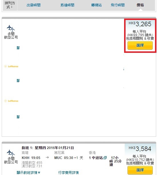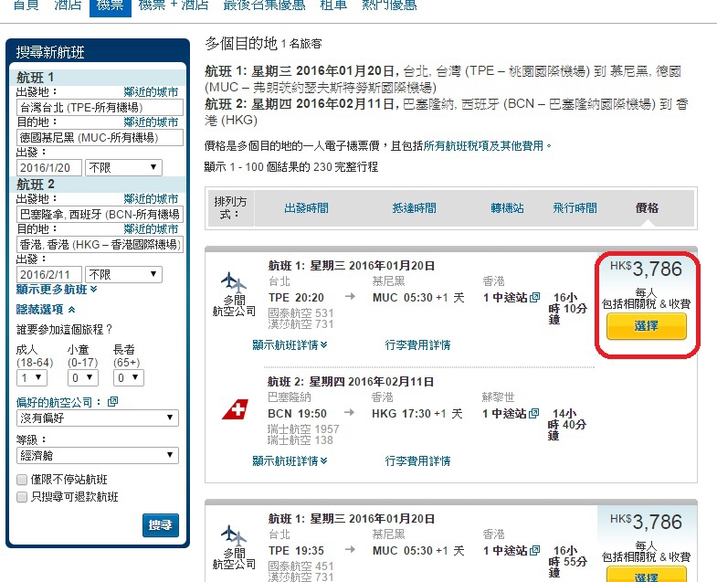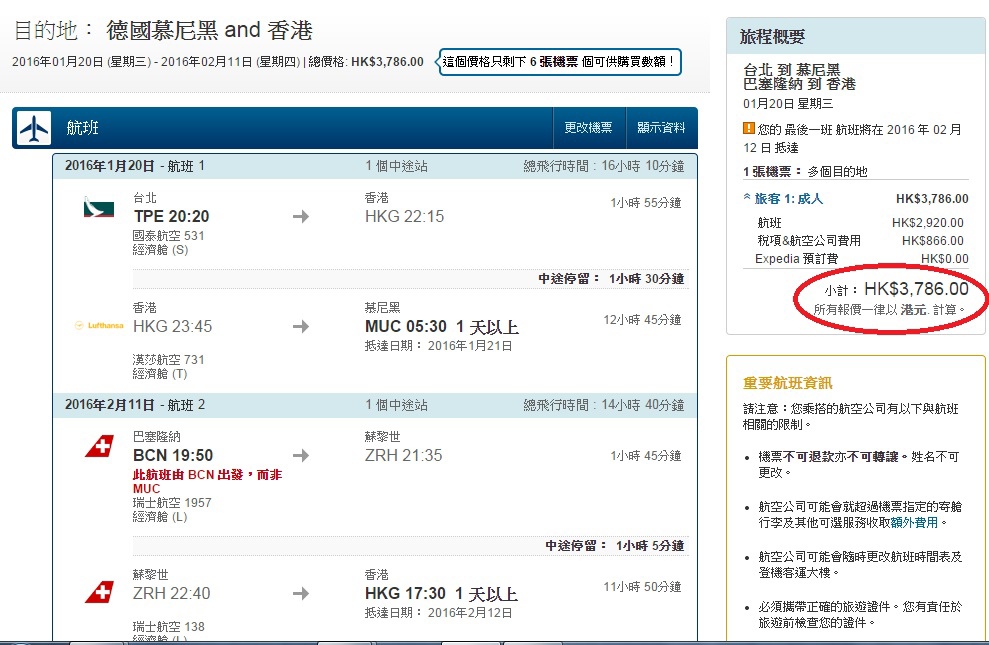因為時間不多,也不想跑太多地方,所以我是直接買步驟二的單純歐洲來回機票而已。