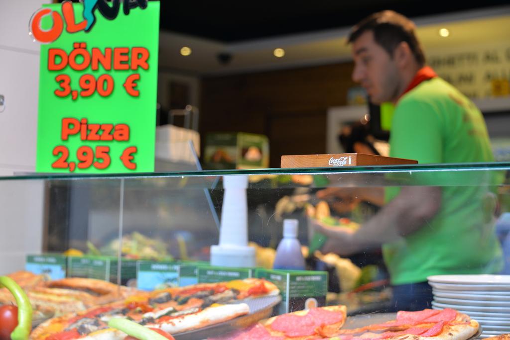 吃完冰淇淋開心準備收工回旅館時,經過這家賣披薩、中東卷餅的店OLIVA,裡面滿滿的人潮