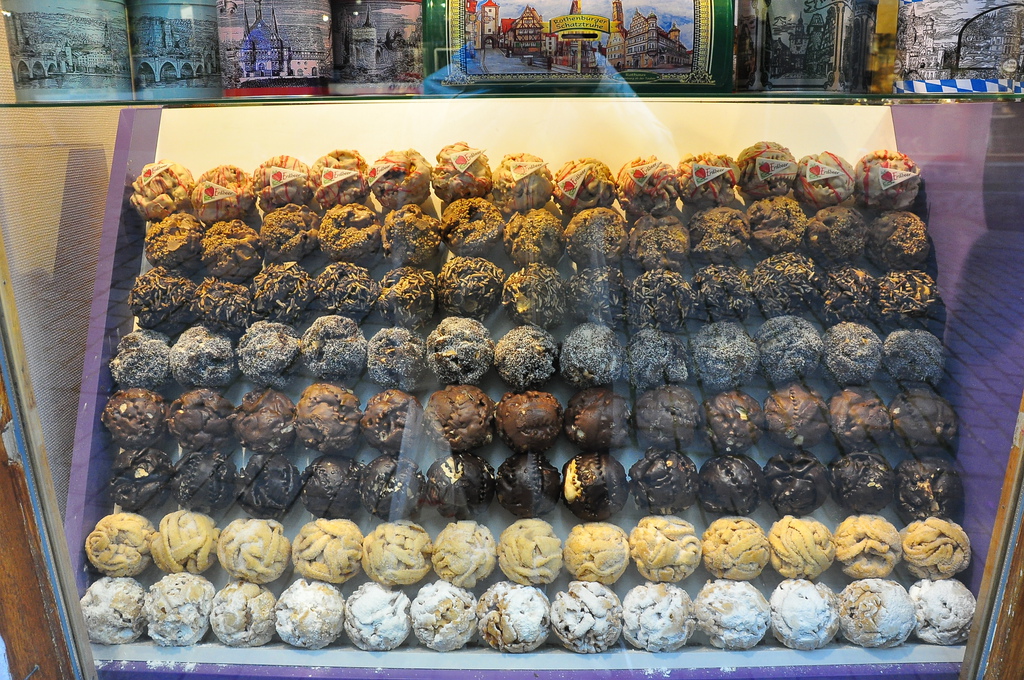 羅騰堡最知名的點心-雪球,口味眾多。吃起來像是沾滿糖粉的沙其瑪